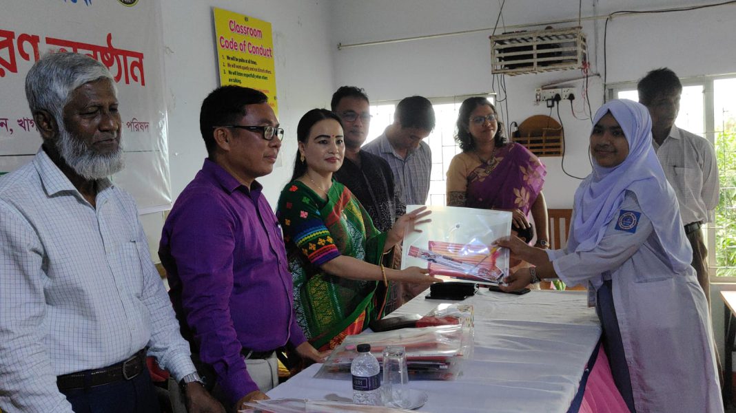 খাগড়াছড়ি মহিলা কলেজে শিক্ষার্থীদের মাঝে শিক্ষা উপকরণ বিতরণ করলেন পাজেপ চেয়ারম্যান
